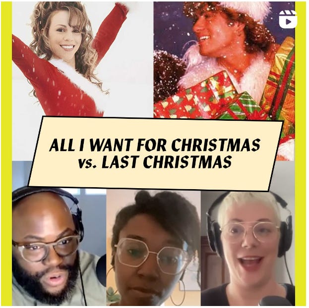 BBC Pop Culture Debate Club: I was once again on a podcast discussing Mariah Carey’s “All I Want for Christmas Is You.” 10-year-old me is delighted that is part of adult me’s career. I wish I could tell a speaker’s bureau that I can be booked to talk about Mariah Carey (maybe I can?) Me and Jenny Eliscu were the debaters, with Ronald Young, Jr. (of the amazing podcast Weight for It) serving as final judge. If you can bear to hear people talk about Christmas music 3 weeks after the fact, give it a go.